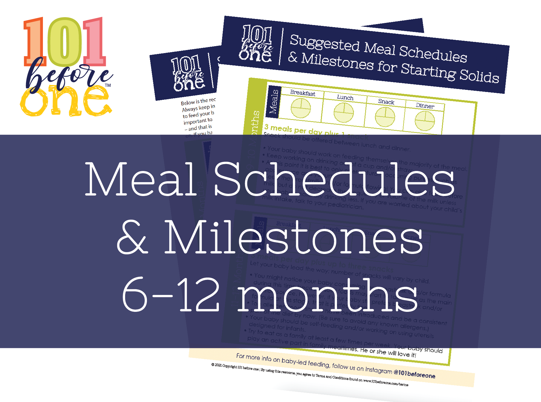 We have listed the recommended number of meals, snacks, and milestones for baby’s first 6 months on solids. These are suggestions to help you get started. Always keep in mind the goal of responsive feeding – which means that you as the parent decide what to feed your baby and when, and your baby decides how much they will eat. Start with the meals and snacks.